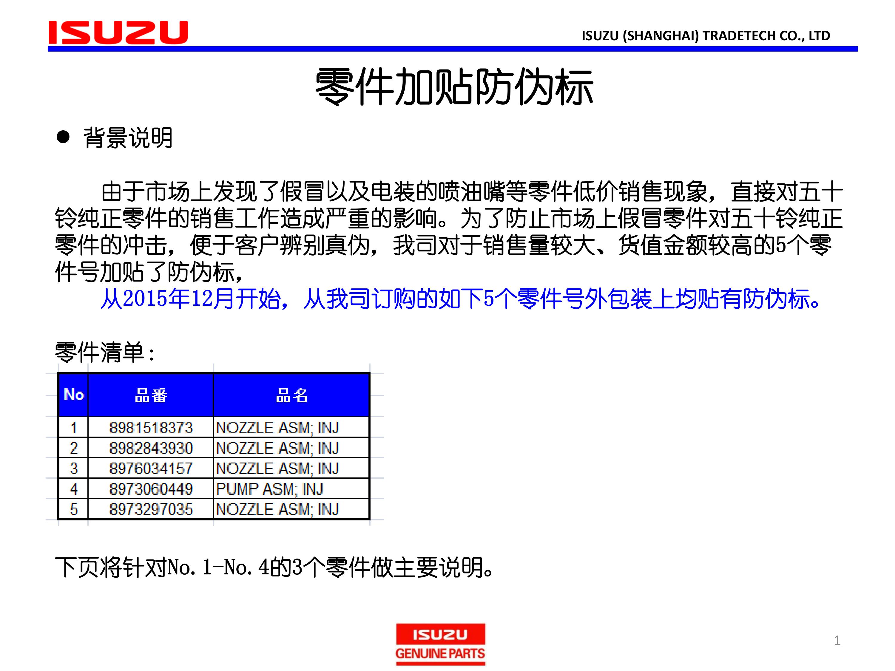 ISUZU零件加貼防偽標的公告